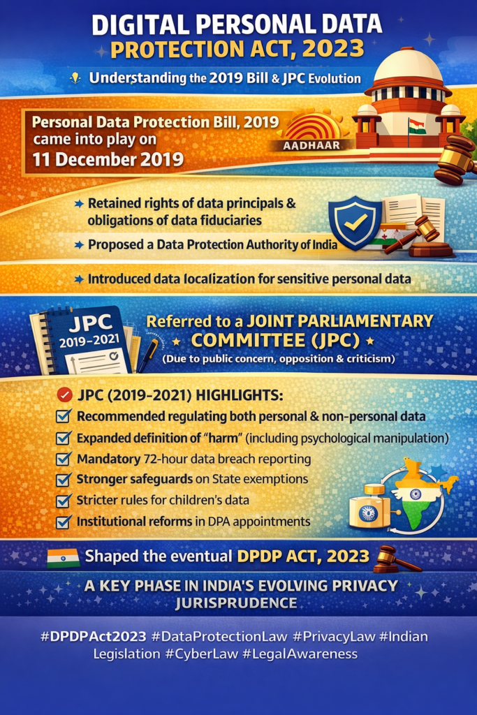 The 2019 Bill was a revised version of the 2018 draft prepared by the Justice B.N. Srikrishna Committee. While it retained the foundational structure of rights and regulatory oversight, it incorporated several modifications reflecting the Government’s policy approach.