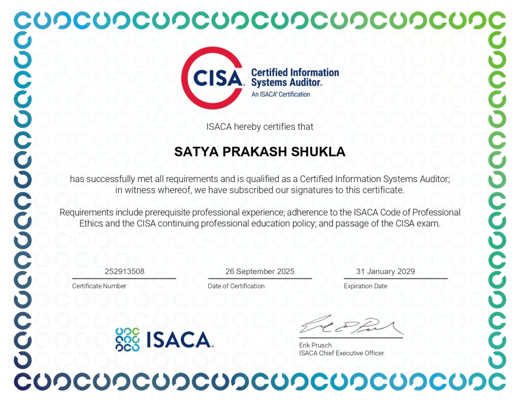 • Certified Information Systems Auditor (CISA) – ISACA (2025)